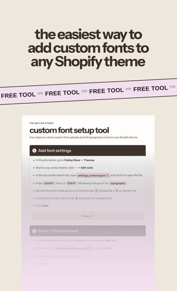 Get my free tool to use custom fonts on Shopify (code-free 💅🏼)